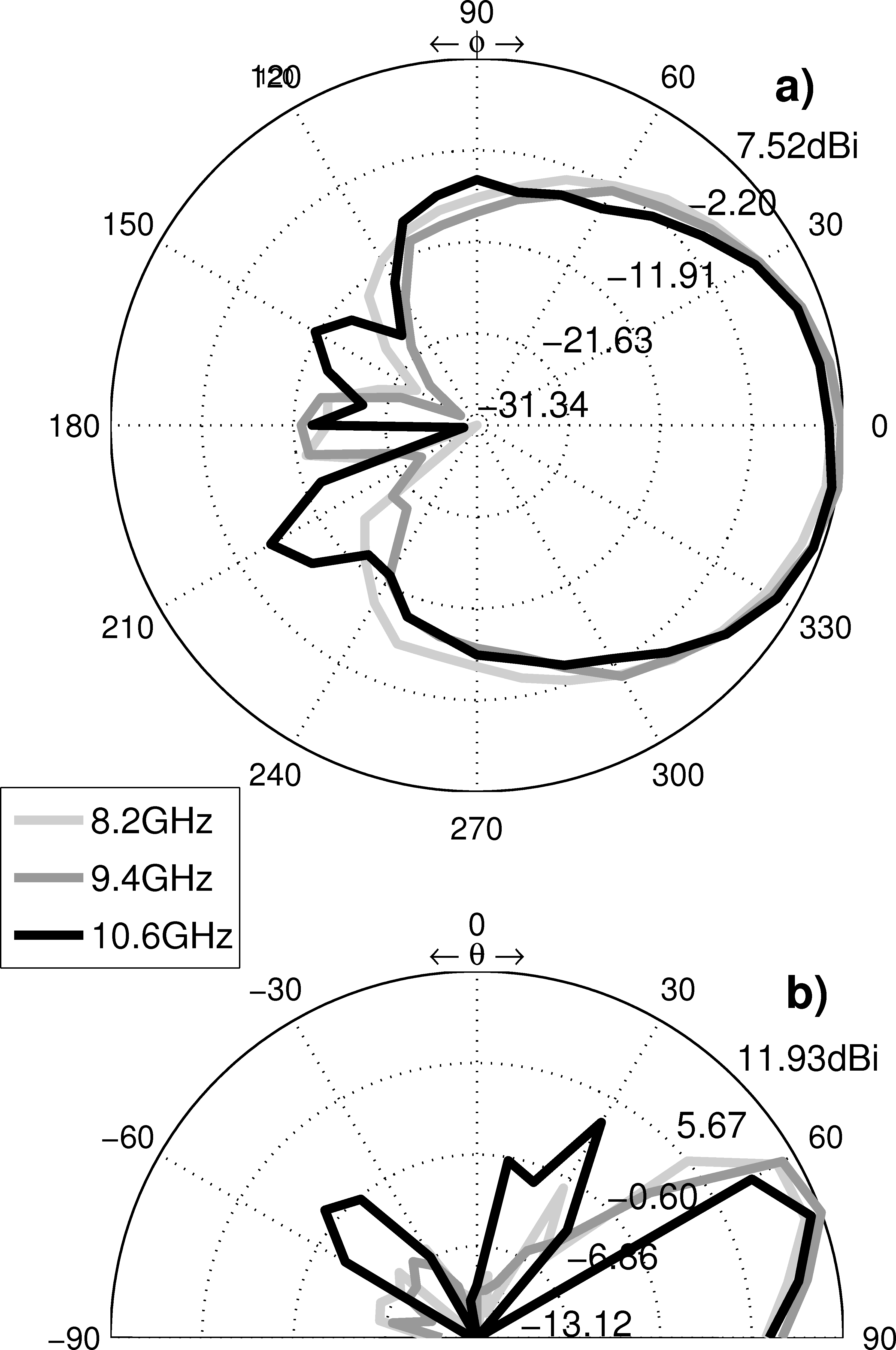 Triangular EBG Antenna measured radiation patterns [1]. |
